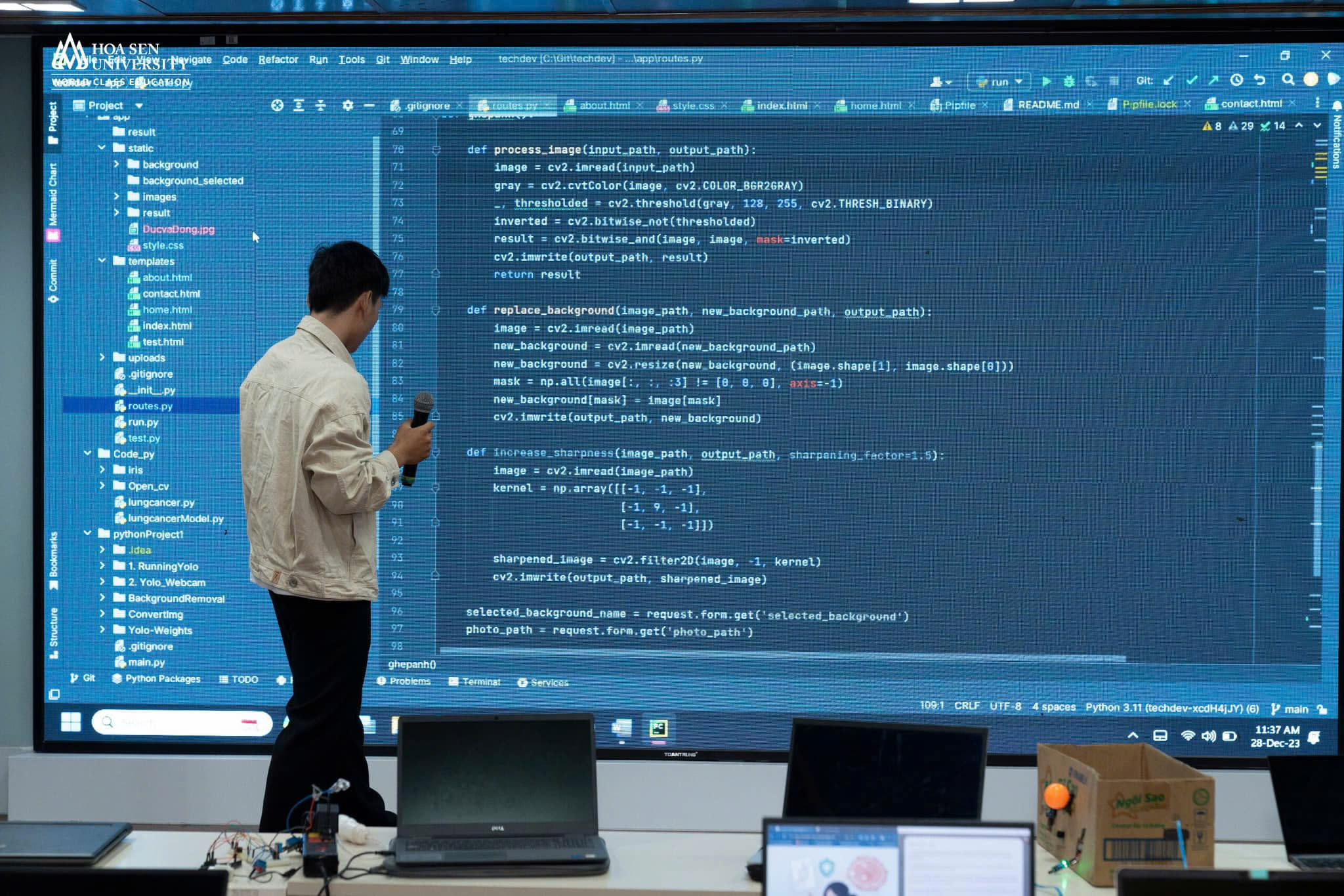 Tại Đại học Hoa Sen, chương trình Công nghệ thông tin được xây dựng theo hướng ứng dụng, giúp sinh viên nắm vững kiến thức nền tảng về lập trình, hệ thống thông tin, dữ liệu và các công nghệ hiện đại. Sinh viên có cơ hội tham gia các dự án thực tế, tiếp cận môi trường doanh nghiệp và tích lũy kinh nghiệm nghề nghiệp ngay trong quá trình học.