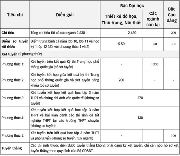 Đối với phương thức 3, 4, 5 không cần qua sơ tuyển, trường nhận hồ sơ xét tuyển từ 6/7-24/7 và từ 1/8-22/8.