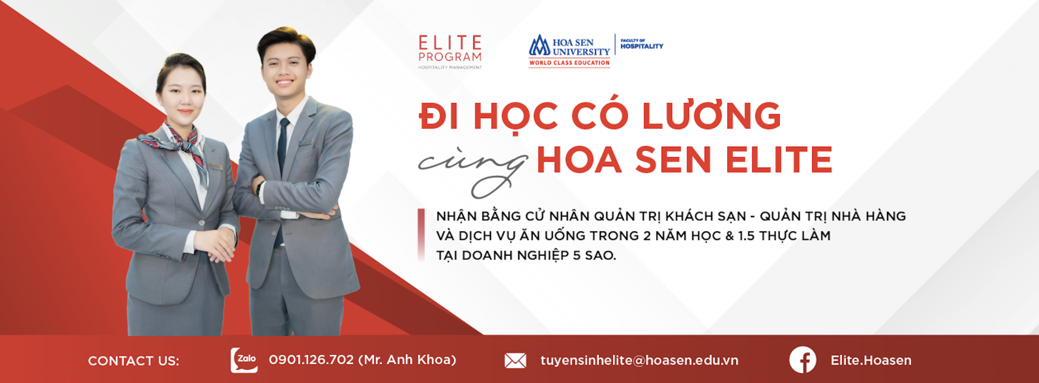Chương trình Hoa Sen Elite với chương trình học 100% Tiếng Anh, 2 năm học lý thuyết và 1,5 năm thực làm tại doanh nghiệp đã giúp sinh viên HSU có nhiều lợi thế ưu thế cạnh tranh trong lĩnh vực Nhà hàng – Khách sạn.