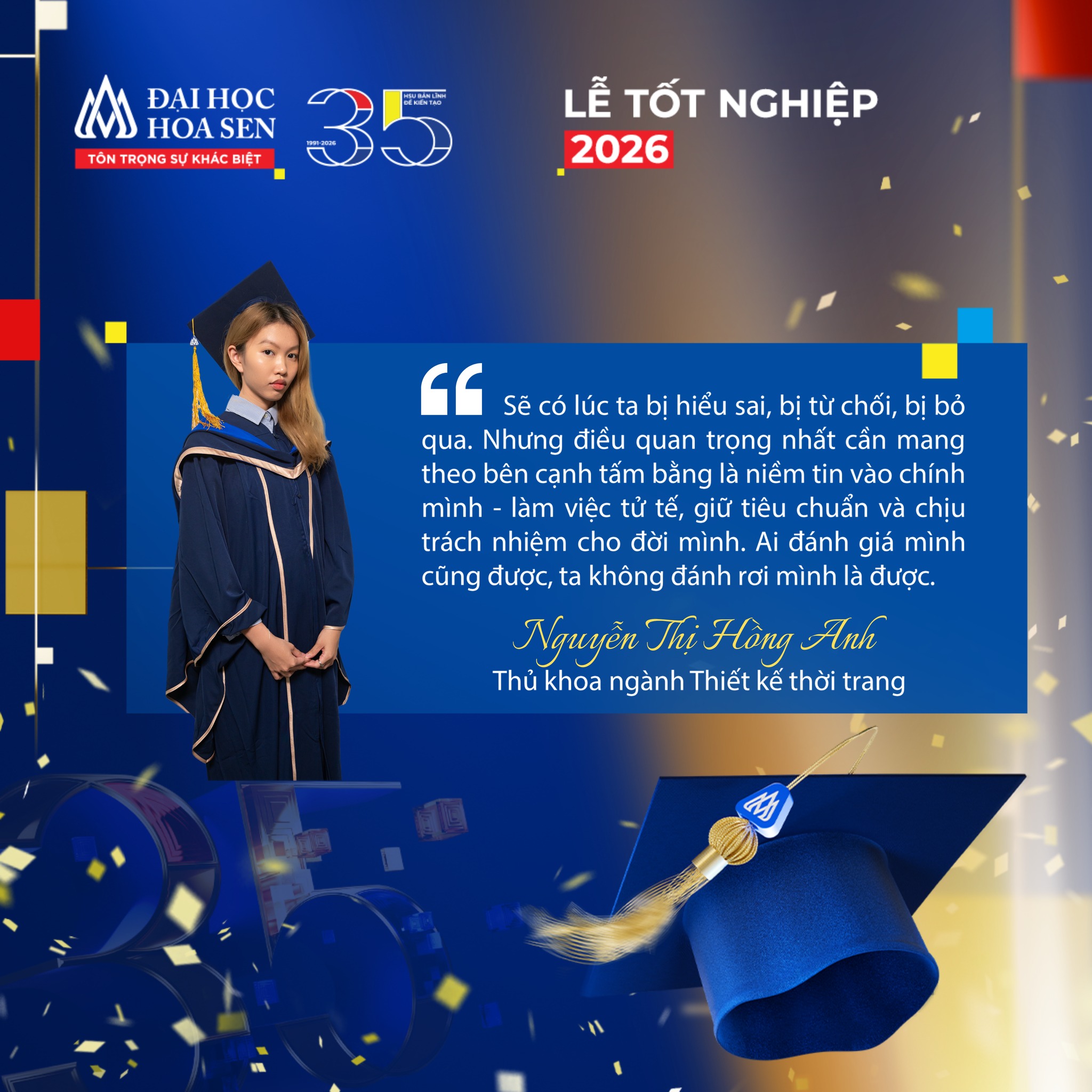 “Sau khi tốt nghiệp, mình khởi nghiệp với một brand local thời trang nam và từng bước xây dựng thương hiệu online. Hiện thu nhập bình quân đạt 40–50 triệu/tháng thậm chí cao hơn vào mùa cao điểm. Nhưng quan trọng nhất vẫn là mình được làm đúng đam mê và được sáng tạo mỗi ngày.”