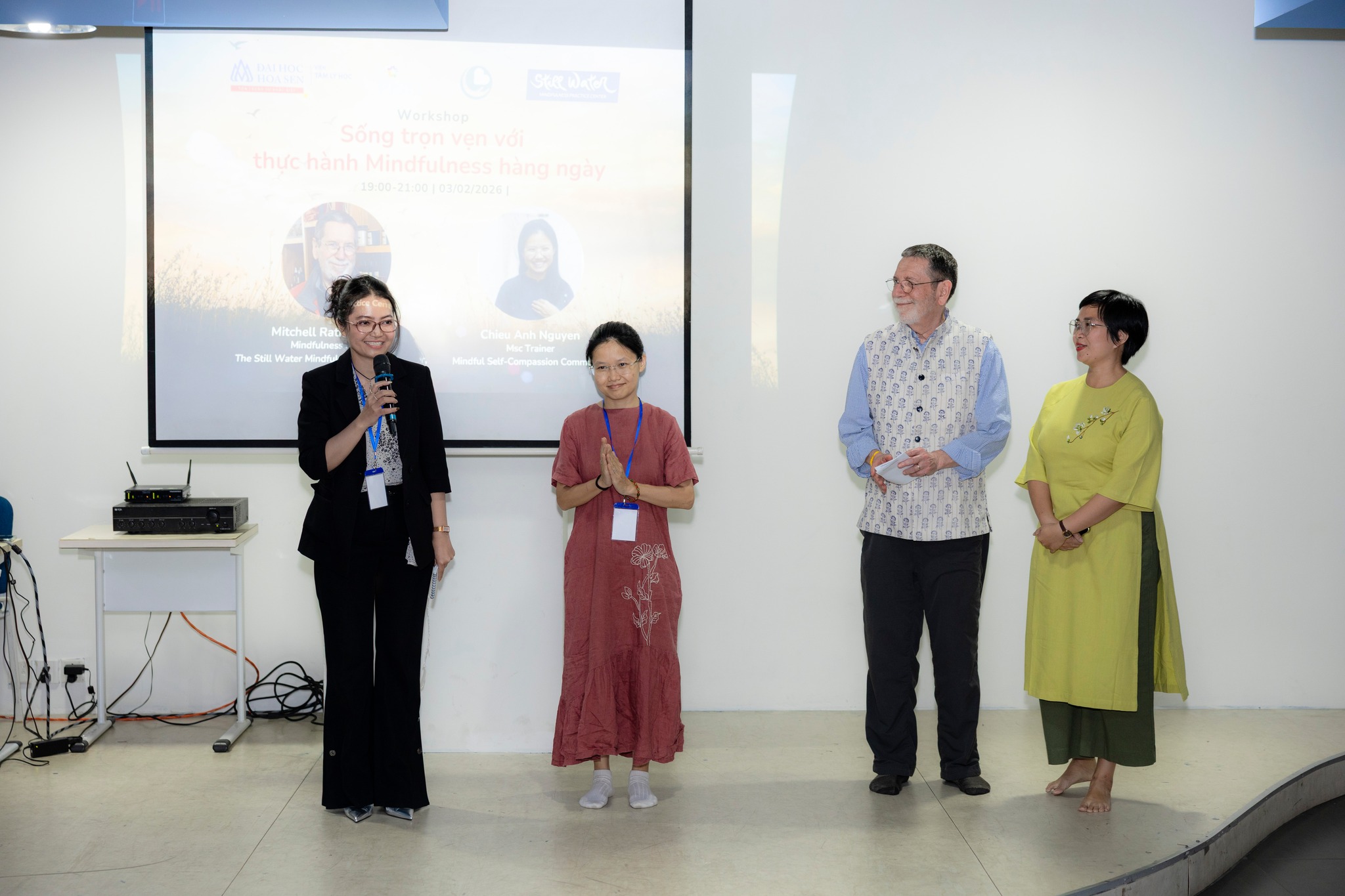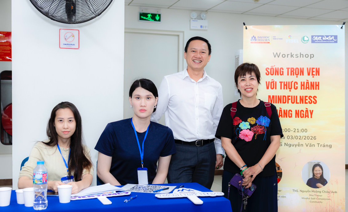 Tối ngày 03/02/2026, Viện Tâm lý học – Trường Đại học Hoa Sen phối hợp cùng Cộng đồng Trắc Ẩn Với Chính Mình tổ chức workshop “Sống trọn vẹn với thực hành Mindfulness hằng ngày”, thu hút sự tham gia của giảng viên, sinh viên, các nhà trị liệu và những người quan tâm đến chăm sóc sức khỏe tinh thần.